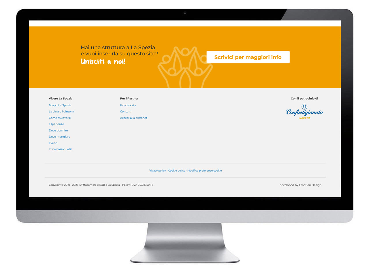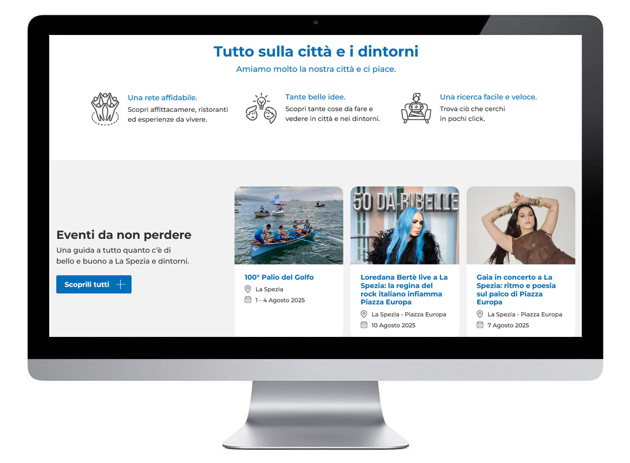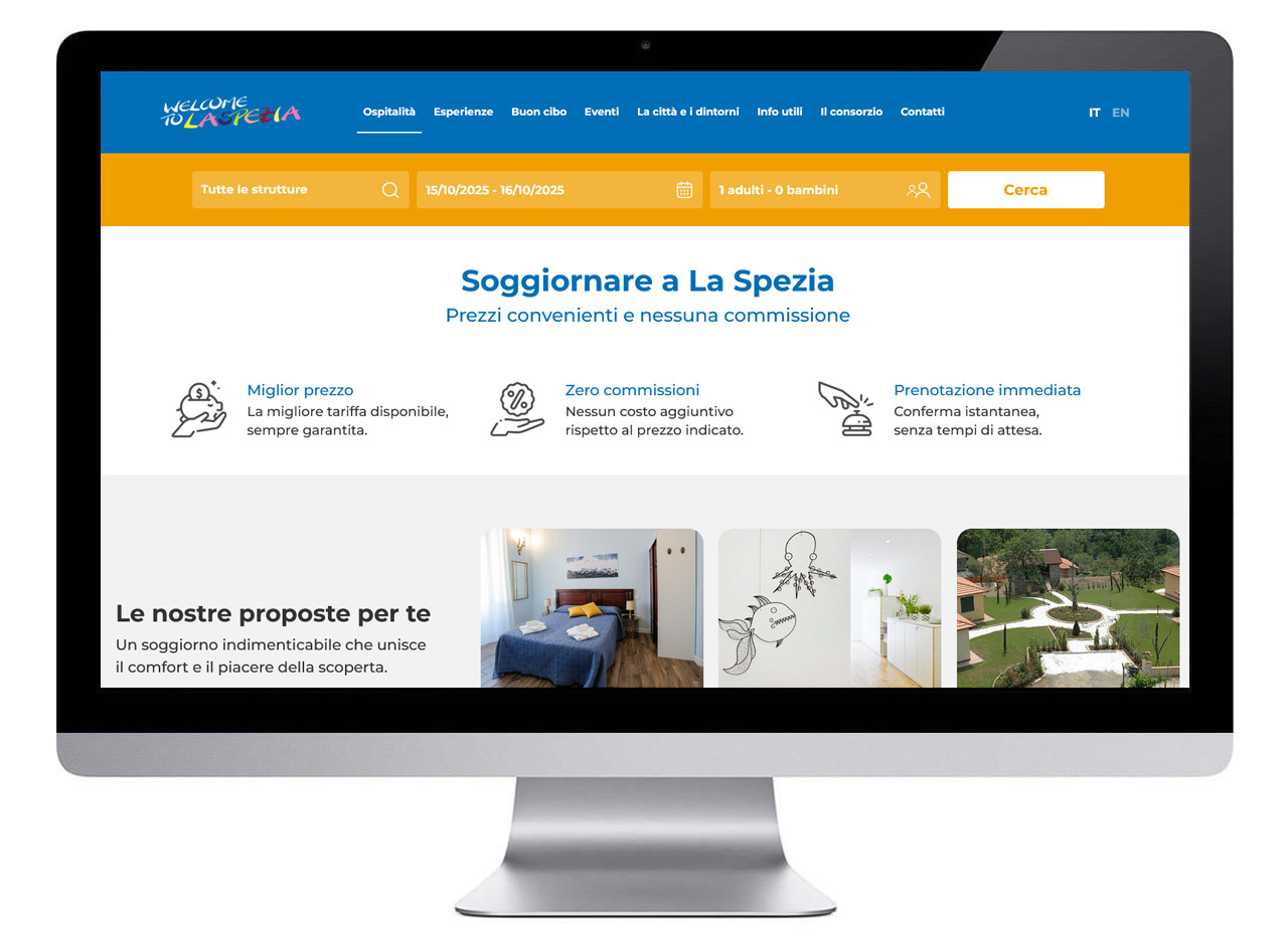 Il nuovo sito Welcome La Spezia unisce estetica e funzionalità in modo impeccabile. La grafica, vivace ed elegante, riflette l’identità del consorzio e coinvolge l’utente in un’esperienza dinamica. L’integrazione completa con il CRM semplifica la gestione per gli associati, mentre la struttura responsive garantisce flessibilità operativa e un’immagine online forte e coerente.